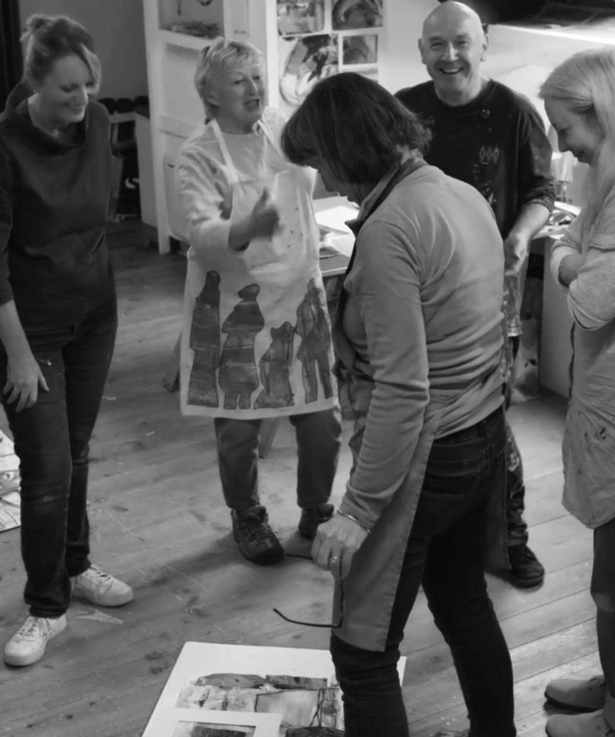 “Having lost my way creatively I selected David’s course to help rediscover a love for mark making. My initial reticence was quickly dispelled. A warm, generous and open-hearted artist, his relaxed yet structured approach pulls together a wide variety of processes that fit seamlessly together, each one informing the other. In a short time, I was thinking and responding with a freedom of expression that left only excitement at the possibilities of what may be achieved. The course continues to have a profound effect on my art and I’m once again eager to be in the studio, confident that I now have the building blocks to help discover what defines me as an artist.”